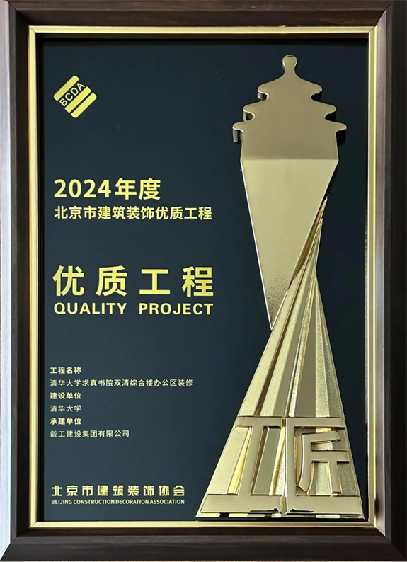 同時,2023-2024年度北京市建筑裝飾優(yōu)質(zhì)工程質(zhì)量評價結(jié)果及施工組織設(shè)計競賽也在會議中公布,戴工集團憑借精湛的施工工藝和嚴格的品質(zhì)把控,所承建的“門頭溝三家店糧庫棚改定向安置房項目精裝工程”以及“清華大學求真書院雙清綜合樓辦公區(qū)裝修項目”均獲得2024年度北京市建筑裝飾優(yōu)秀工程獎!